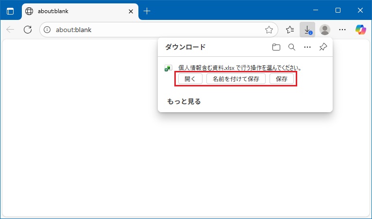 Edgeのデフォルトの設定では、ファイルダウンロードを行うと必ずダウンロードフォルダにファイルが蓄積されます。