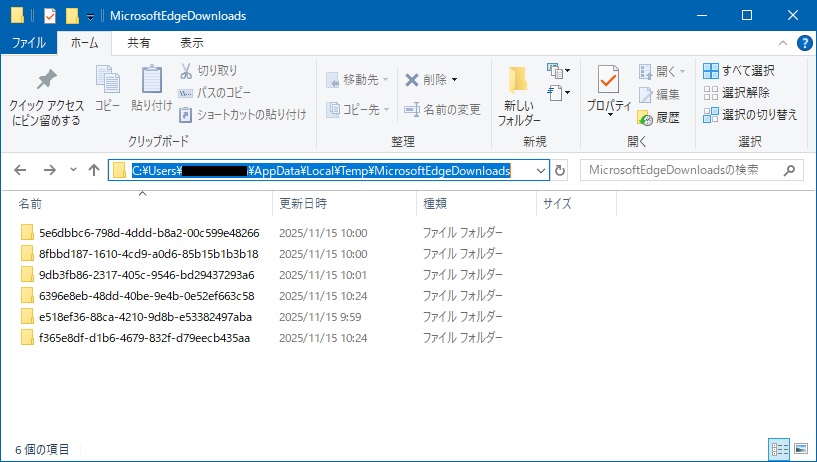 ※一時ファイルとして別の場所にファイルが保存されますが、Edge終了のタイミングで削除されるようです。筆者の環境ではこの動きの確証とれましたが、環境によるかもしれないので気になる方は自身で確認お願いします。筆者の環境では一時ファイルの保存先はこちらでした。