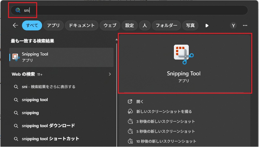 Windowsメニューの検索バーにて「sni」と入力すれば、出てきます。